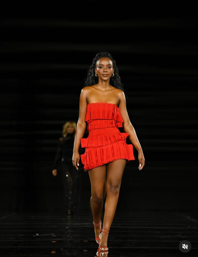 The new face of L’Oréal Paris for Sub-Saharan Africa , actress Ama Qamata walked her first fashion show for the brand joining fellow ambassador and actress, Temi Otedola.